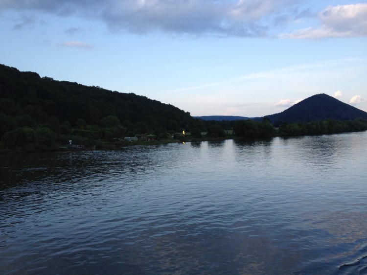 das Spiegelbild des Schimmers einer Stadt im Fluss hinzu.