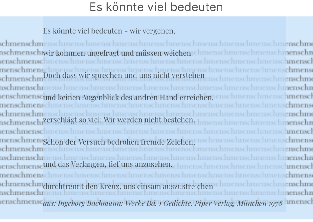 Diesen Sonntag gibt es ein Gedicht von Ingeborg Bachmann.
